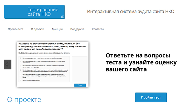 Система тестирования основана на плагине для WordPress miTest (проект на Github). miTest и содержание модуля по удобству использования сайта НКО созданы Анной Ладошкиной.