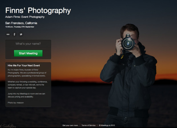 роме этого, зарегистрированные пользователи сервиса получают возможность создания своих персональных страниц, которые можно представить как онлайновые визитки. Кроме кратких сведений о персоне, такой сайт-визитка обязательно содержит кнопку Start Meeting, позволяющую начать видеовстречу с хозяином сайта.