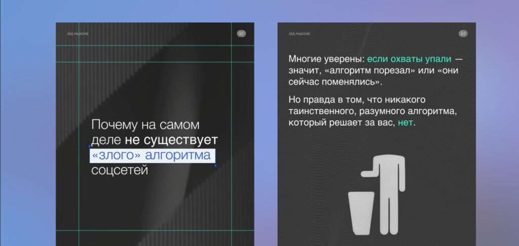 Карыпов объясняет, что падение охватов — не всегда признак того, что алгоритм так решил. Алгоритм — это набор формул, которые просто фиксируют поведение пользователей. Если пост не получил просмотров или лайков, значит аудитория не проявила достаточно интереса: не досмотрела, не поставила реакцию, не сделала репост. Алгоритм лишь считывает этот сигнал и делает логичный вывод: контент оказался нерелевантным. Это не наказание — это форма обратной связи.
