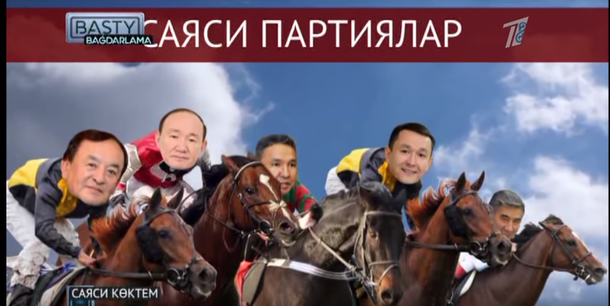 Бірінші сюжет «Саяси көктем» атауымен лирикалық мәнерде басталады. Тілші кадр сыртынан Төлеген Айбергеновтың «Бір тойым бар…» өлеңін «Бір сайлауым болары сөзсіз менің. Бірақ… Дәл қай күні екенін айта алмаймын» деп оқиды. Осылайша, «бір тойым» сөзін «сайлауым» сөзімен алмастырады. Журналистер халықтың сайлауды сағынып қалғанын айта келе ҚКХП (коммунистер партиясы), «Ауыл» және «Ақ жол» партиялары туралы айтады. Nur Otan және екінші президент Қасым-Жомарт Тоқаев туралы қысқа сөзбен қайырады. Тіпті сюжет соңындағы партия көшбасшыларының атқа мінген сайлауалды бәйгесінде Nur Otan өкілі болмай шығады. Ол партия бәйгеге қатыспаған не оза шауып кетіп қалған.