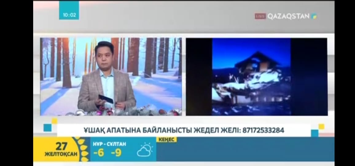 QAZAQSTAN ұлттық арнасы Tansholpan таңғы бағдарламасында ұшақ апаты туралы тікелей хабар таратты. Бағдарлама жүргізушілері тікелей эфирде телефон арқылы оқиға орнындағы тілшімен байланысып, апат туралы сұрақ қойып, жауап алды. «Алматыдағы әуе апаты» тақырыбымен студиядан жаңалық жасап, шұғыл желі телефонын да көрсетті.