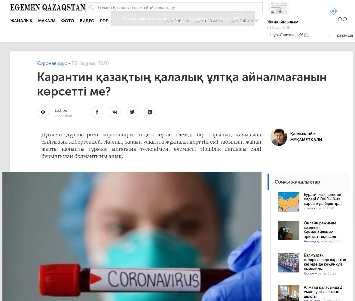 Qazaquni.kz сайтындағы әріптестеріміз коронавирус тақырыбын басқа қырынан ашыпты.
