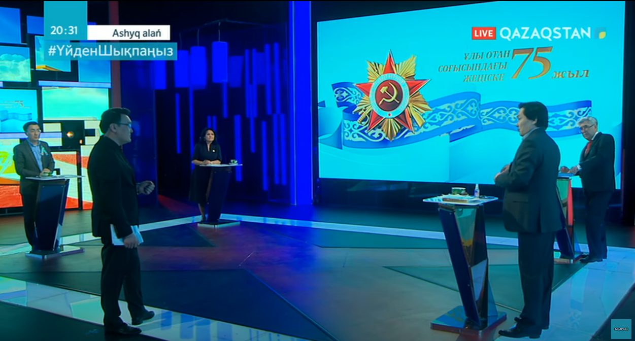«Ашық алаң» ток-шоуында «1941-45 жылдар — Ұлы Отан соғысы ма әлде ІІ дүниежүзілік соғыс па» деген сауал талқыланды. Студия қонақтары: тарих ғылымдарының кандидаты, доцент, Мемлекет тарихы институты директорының орынбасары Амангелді Қашқынбаев, ҚР Ұлттық музейінің зерттеушісі, тарихшы Серік Әбдірахманов, «Атамның аманаты» қоғамдық бірлестігінің құрылтайшысы Әлия Сағымбаева және журналист Махат Садық.